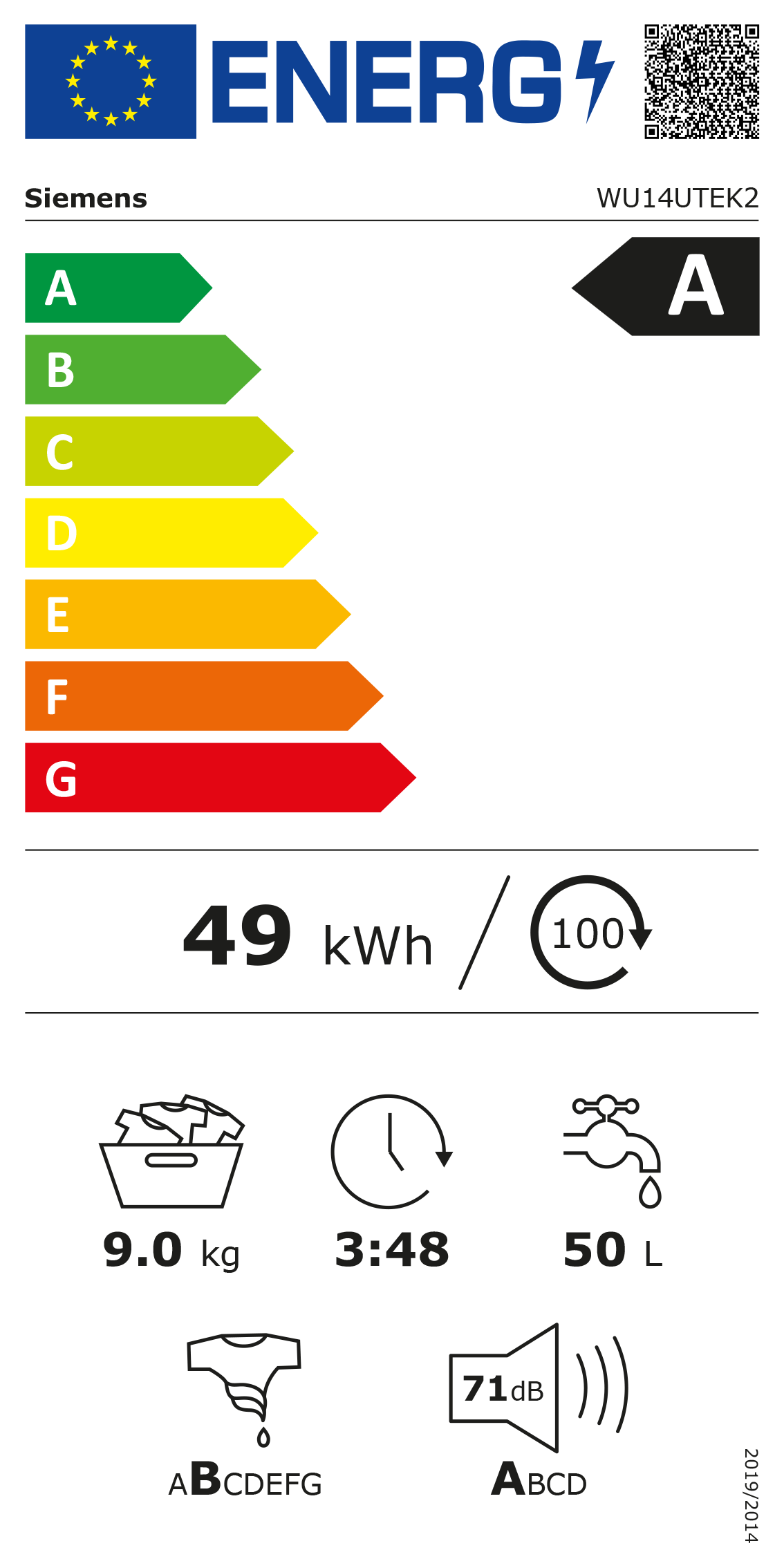 WU14UTEK2 iQ500, Waschmaschine, unterbaufähig - Frontlader, 9 kg, 1400 U/min.