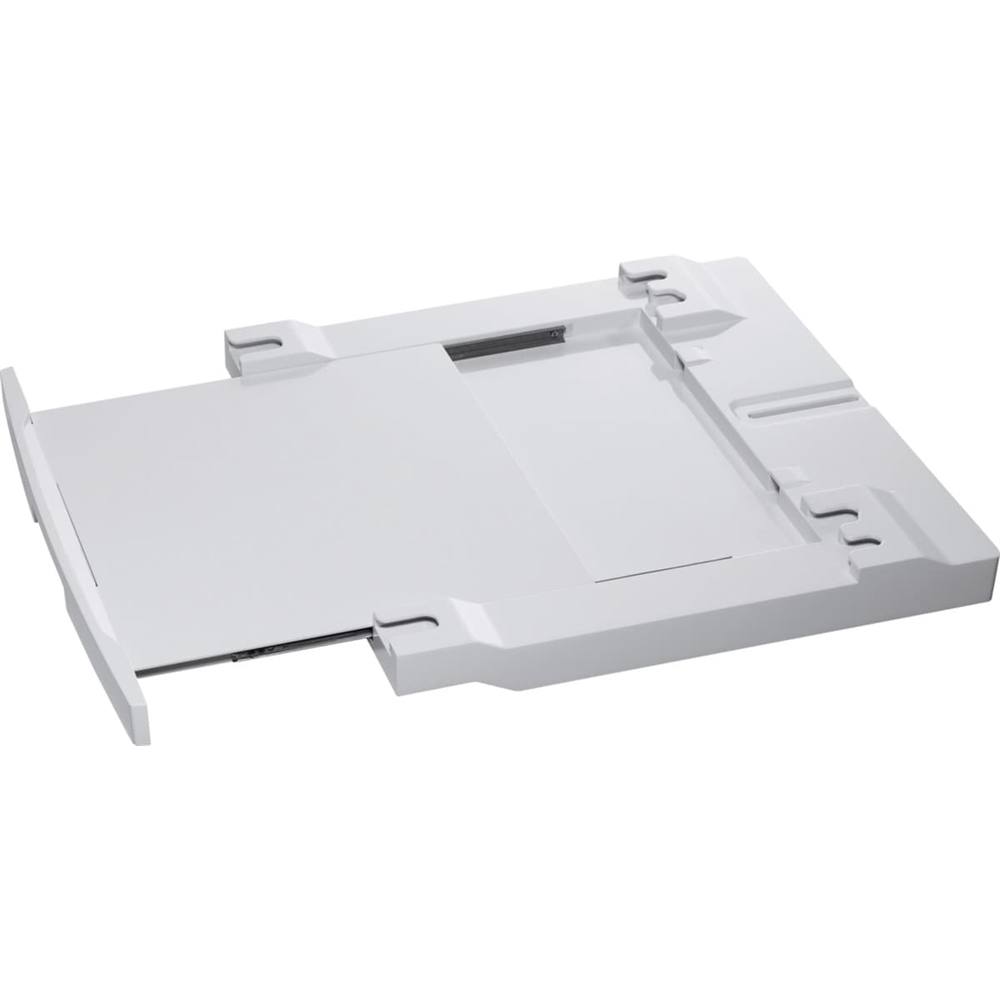 Platziere mit dem AEG Verbindungssatz für die Wasch-Trockensäule deinen Trockner platzsparend und sicher über deiner Waschmaschine. Die praktische, ausziehbare Arbeitsfläche erleichtert dir die Handhabung beim Sortieren deiner Wäsche.
